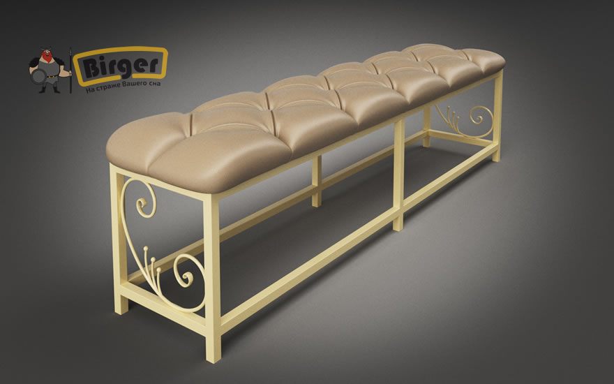 Очень украшают пуф кованые виньетки и глубокая каретная простежка сиденья. В нем удачно сочетаются мягкость кожи или ткани и некая "брутальность" металла, образуя единый гармоничный образ.