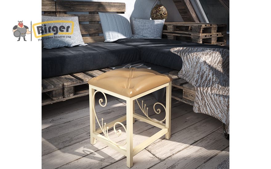 Удобным дополнением к трюмо служит металлический пуф, с объемным сиденьем из искусственной кожи или мягкой ткани, его металлическое основание своим дизайном перекликается с основанием трюмо.