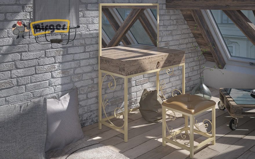 Трюмо и пуф Бетис - удобный и функциональный комплект для спальни в стиле "лофт", который является завершающим штрихом к общему идеальному образу.