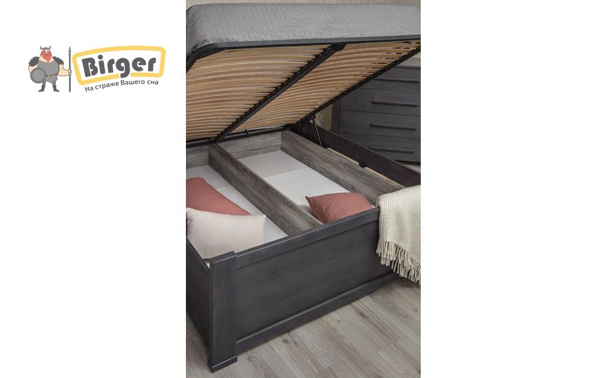 Під основою ліжка — зручний і місткий короб для зберігання білизни.