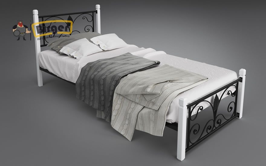 Металеве ліжко "Крокус Міні" - втілення витонченості та грації! Тонкі завитки з кованого металу надають ліжку легкість, а дерев'яні прямі ніжки виглядають стійко і ґрунтовно, підтримуючи основу ліжка.