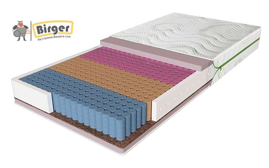 Кокосова койра. Кокос — це натуральний матеріал, отриманий з горіха кокосової пальми. Не піддається гниттю, на довгі роки зберігає пружність і жорсткість, гіпоалергенний. Кокос в складі матраца використовується як жорсткий і пружний прошарок. |